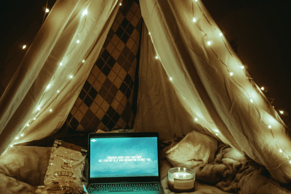 6.) Outdoor Movie Nights: Invite friends over for a backyard movie night. Hang a sheet, set up a projector,little fairy lights and enjoy a cosy cinematic experience.